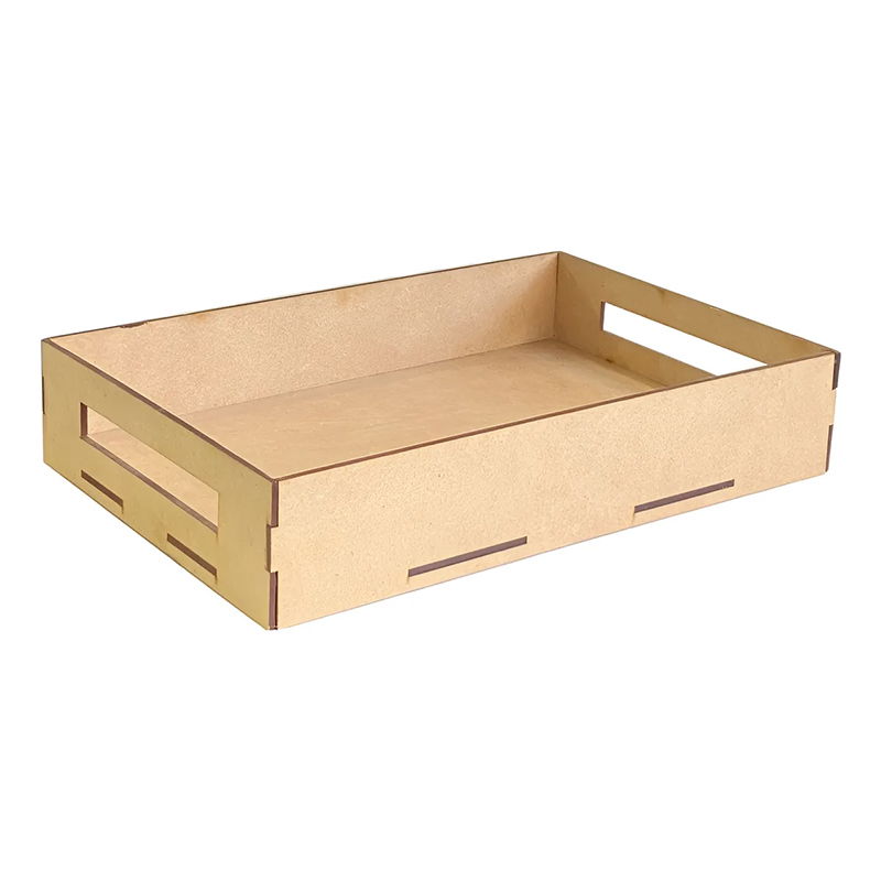 Bandeja láser cortada a láser en MDF liso. Superficie pareja para stencils, papeles de decoupage y pátinas. Borde cómodo para manipular; ideal para regalos personalizados y aula. Disponible en Artes del Bosque; hacemos envíos a todo el país.